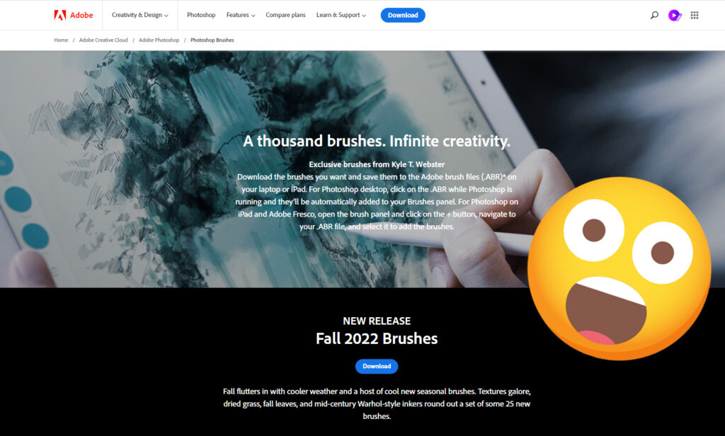 לאחרונה גיליתי שאדובי (מזמן) קנו רישיון מקייל וובסטר (Kyle T. Webster) לכל המברשות שהוא ייצר, ועדיין מייצר לפוטושופ ופרסקו..